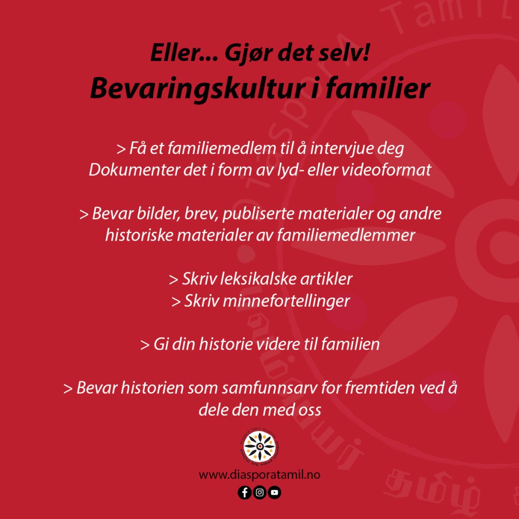The initiative to document and disseminate Tamil-Norwegian local history as a book project started in 2017. The initiative gradually evolved into DiasporA Tamil Archives (DTA) in 2020. Community Archives and Participatory Archives are grass-root collaborative movements that develop in a community as a form for self-documenting.