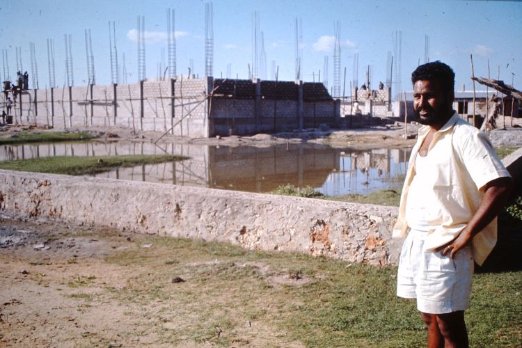 The boat building hall started in Karainagar. Anthony is at the building site where he sees the progress of the building.