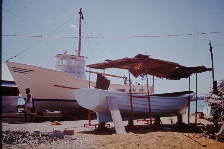 At our slip in Karainagar. Picture of manufactured boats; 18′ net boat and 37′ shrimp trawl. These are our main products.