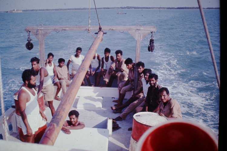 On board the trawler out in the open sea north of Jaffna. Antony and most of the group leaders and some extra professionals on board. Trial trip with the trawler.