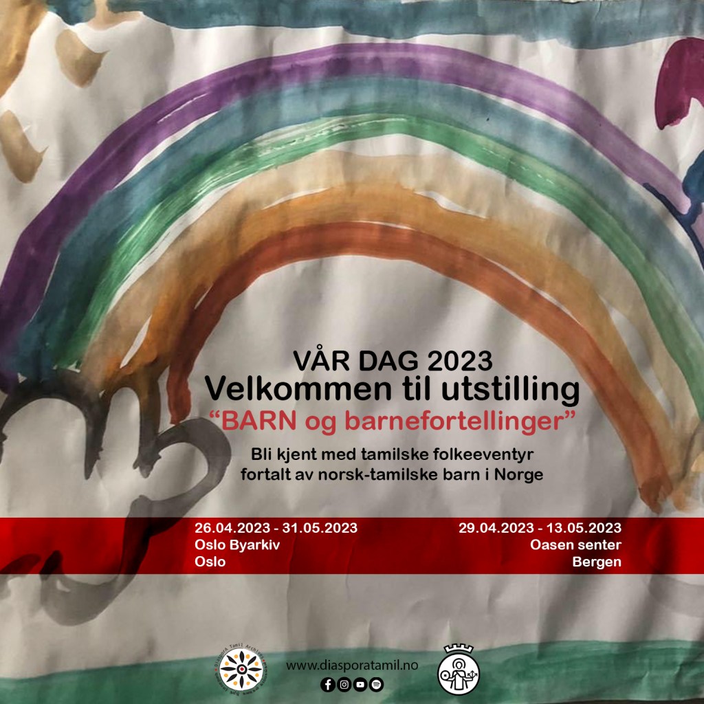 Samme utstilling ble også holdt tidligere i år i Oslo og Bergen, hvor plakater med tamilske folkeeventyr skrevet på tamilsk og norsk med QR koder av lydopptak med fortellingene ble utstilt. Utstillingen var oppe på et fellesareal på Oasen senter i perioden fra 2.mai- 28. mai 2023 og i lesesalen i Oslo Byarkiv mellom 26.april-22.des.