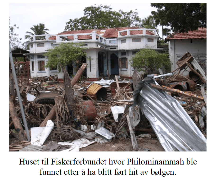 26.desember 2004 ringte en venninne av meg på morgenen og fortalte at mange hadde mistet livet i flommen i Thailand. Etter en kort stund ringte en av mine søsken og fortalte meg at mange hadde gått bort i flommen på Sri Lanka og Tamil Eelam. Da visste vi ingenting om at dette dreide seg om en tsunami eller at vi hadde mistet mamma i flodbølgen.