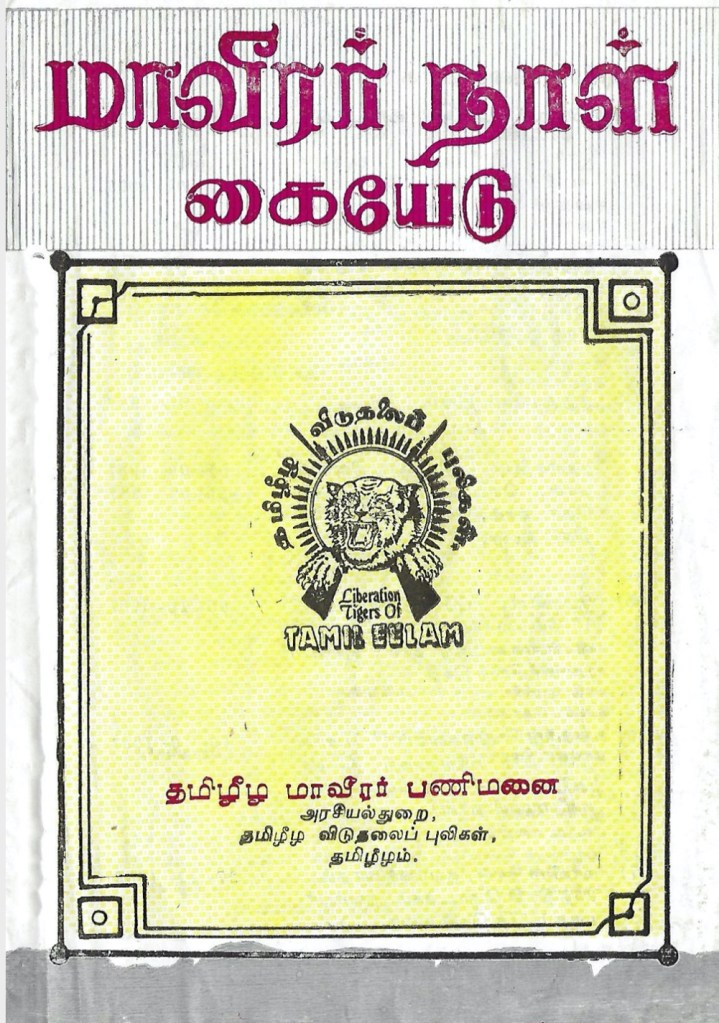 National Heroes´ Day handbook – மாவீரர் நாள் கையேடு was published by the National martyrs Office under the Political wing of the Liberation Tigers of Tamil Eelam in Tamil Eelam. The first edition was published in 1992 and the second edition in 1995.